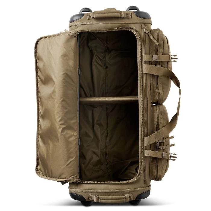 Die SOMS 3.0 (Some Of My Stuff) von 5.11 ist mit einem Fassungsvermögen von stolzen 126 Litern die ideale Einsatz- und Reisetasche für lange Touren. Hier wird nicht nur massig Stauraum geboten, sondern dazu auch noch die Möglichkeit das Ganze bequem zu transportieren. Dank der strapazierfähigen Rollen und dem ausziehbaren Griff kannst du den Rolling Duffle Bag einfach und komfortabel ziehen anstatt ihn umständlich zu schleppen. Der anpassbare Stauraum der Tasche ermöglicht dir alles sicher und ordentlich zu verstauen, so dass jegliche Bekleidung und Ausrüstung seinen Platz findet. Robuste Kufen am Boden sowie herausnehmbare Glasfaserstäbe und vorgeformte Seitenwände geben der Tasche ihre hervorragende Stabilität und sorgen für eine optimale Verteilung der Last.