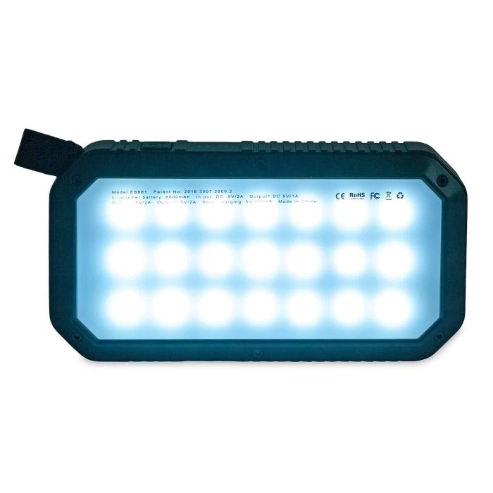 Die Powerbank 8 bietet dir Energie für Smartphone, Tablet, PC oder Digitalkamera und noch dazu Beleuchtung – egal wo du bist. Das Gerät kann über USB oder über Solar (abhängig von der Intensität des Sonnenlichts, für Notfälle gedacht) jederzeit mobil wieder aufgeladen werden. Eine Statusanzeige in Prozent zeigt die noch vorhandene Batteriekapazität in Prozent an. Die Energie wird in einem hochwertigen Lithium-Polymer-Akku mit langer Lebensdauer gespeichert. Das widerstandsfähige, spritzwassergeschützte Gehäuse kann bequem im Rucksack oder der Jackentasche verstaut oder mittels einer Schlaufe daran befestigt oder aufgehangen werden. Zusätzlich ist ein leuchtstarkes LED-Display eingebaut mit einer Brenndauer bis zu 15 Stunden, dass du als Taschenlampe oder Beleuchtung verwenden kannst. Die Powerbank verfügt über 3 Standard USB-Anschlüsse, die das Laden mehrerer Geräte gleichzeitig ermöglichen. Die Powerbank ist kompatibel mit allen Smartphones, Tablets und anderen USB-betriebenen Geräten mit einem 5V-Ladeinput. Das Ladekabel ist im Lieferumfang enthalten.