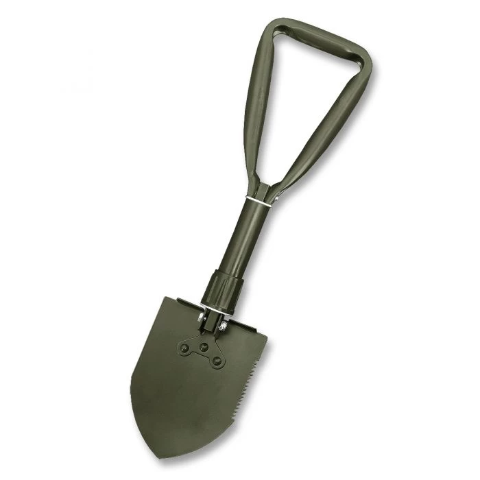 Kleiner, stabiler Dreifachspaten in Superqualität und absolut praktisch im Gebrauch. Handliche Größe, dreifach zusammenklappbar und somit nützlich für die schnelle Handhabung beim Camping oder anderen Outdoor Aktivitäten. Nach nur wenigen Handgriffen ist der Dreifachspaten, mit Sägekante, einsatzbereit. Inklusive Tasche. Länge eingeklappt: ca. 19 cm, Länge aufgeklappt: ca. 46 cm, Maße Spatenblatt: ca. 16 x 11,5 cm. Material: Griffteil und Spatenblatt aus Stahl.