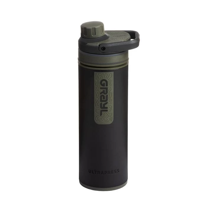 Mit der UltraPress Wasserfilter-Trinkflasche kannst du auch das schmutzigste Wasser im Handumdrehen in reines Trinkwasser verwandeln, ganz egal wo du auf der Welt bist. Der ‚kleine Bruder‘ der GeoPress besitzt ein Fassungsvermögen von 500 ml, kommt mit einem klappbaren Henkel am Deckel und filtert in nur 10 Sekunden (3l/min). Die UltraPress und die GeoPress arbeiten mit dem gleichen, schnellen und wirksamen Prinzip: Wasser wird in den Behälter eingefüllt, der Flaschenkopf mit Filter wird eingesetzt, nach unten pressen und schon kannst du reines Trinkwasser genießen. Dabei werden Viren, Bakterien, Pestizide, Chemikalien, Schwermetalle, Mikroplastik usw. sicher aus dem Wasser gefiltert.
