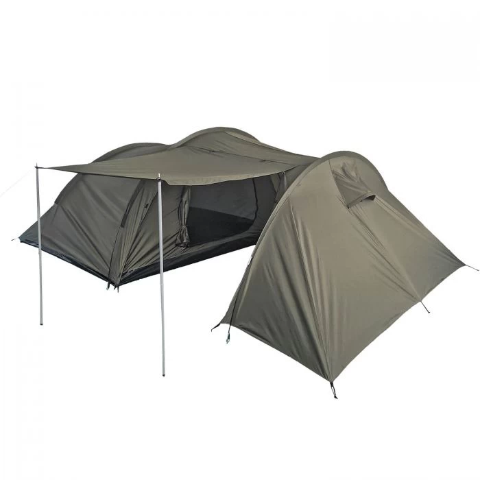 Optimal für einen Gruppen- oder Familienausflug! Das 4-Personen Zelt von Mil-tec besitzt neben ordentlich Platz und einem Zeltvordach auch Stauraum für Gepäck und Ausrüstung. Der Eingang in der Mitte sorgt für Privatsphäre der zwei abgetrennten Schlafbereiche.