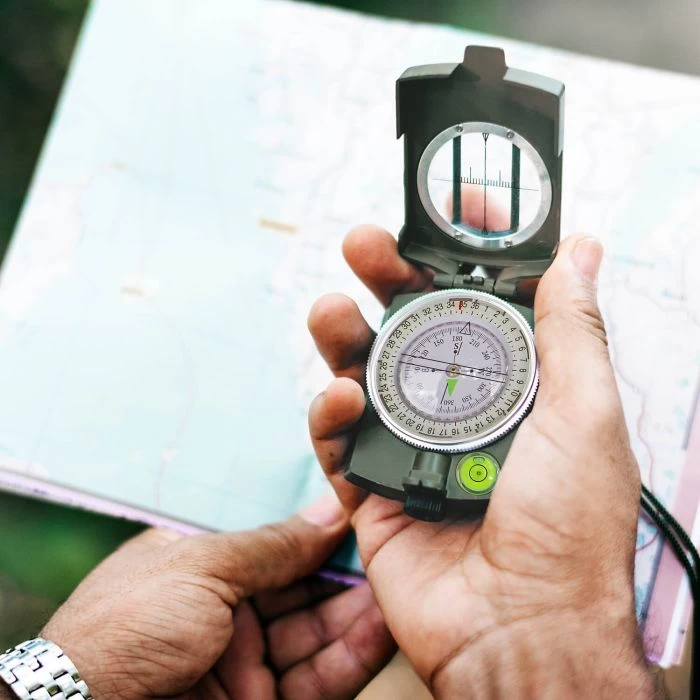 Lieferumfang: Kompass mit Kordel, Nylontasche mit Gürtelschlaufe, detaillierte Gebrauchsanweisung