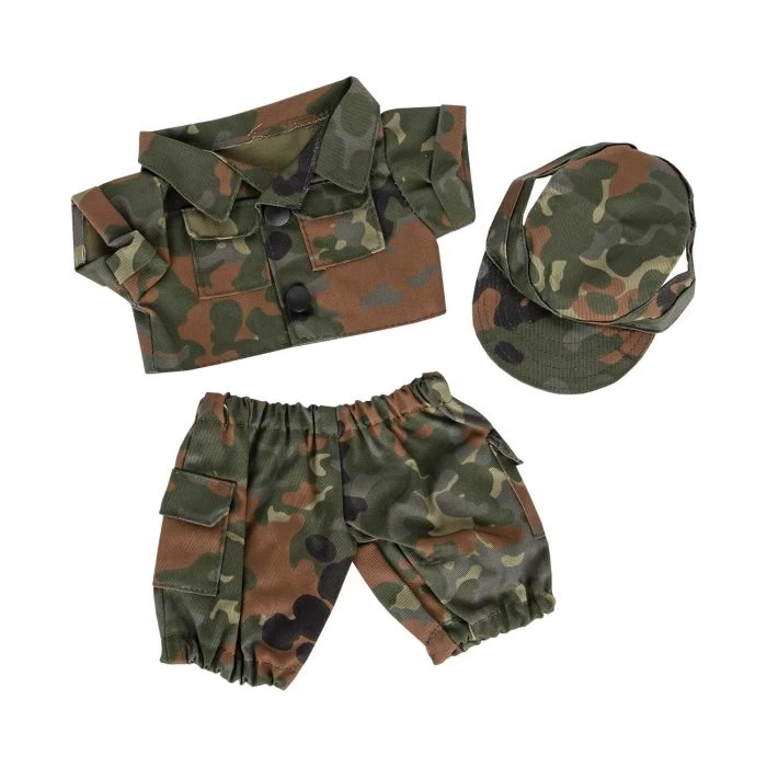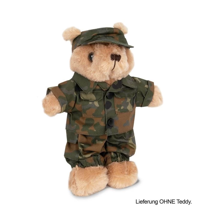Passende Tarnbekleidung für den Teddy 28 cm bestehend aus Feldbluse, Feldhose und Feldmütze.