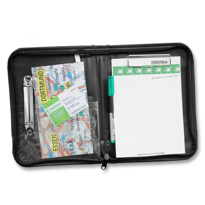 Praktische Kommandeursmappe, im handlichen Format. Hier hat man sein Minibüro immer dabei.