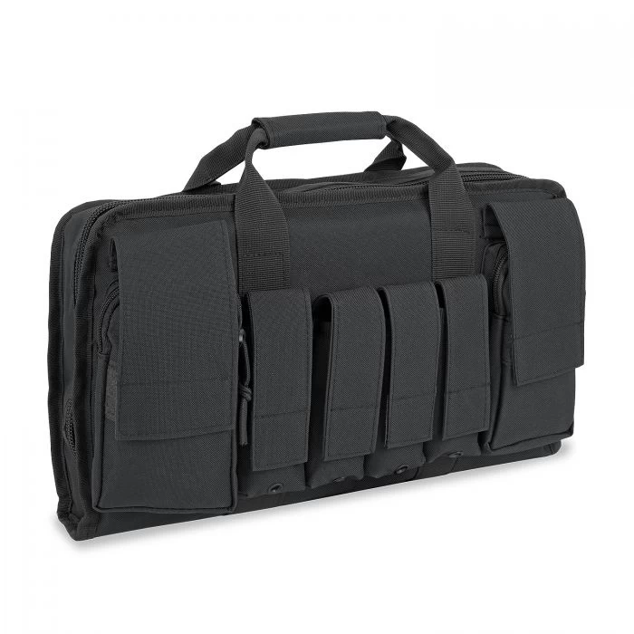 Für genug Platz sorgen die vier Magazintaschen mit Klettverschluss und Ablaufösen, zwei weitere Reißverschluss-Taschen mit Klett-Überschlag, ein Hauptfach mit Klettverschluss-Taschen und ein innenliegendes Netzfach. Zwei integrierte Kurzwaffenhalterungen im Inneren und der abschließbare Reißverschluss am Hauptfach sorgen für einen sicheren Transport der Pistole.