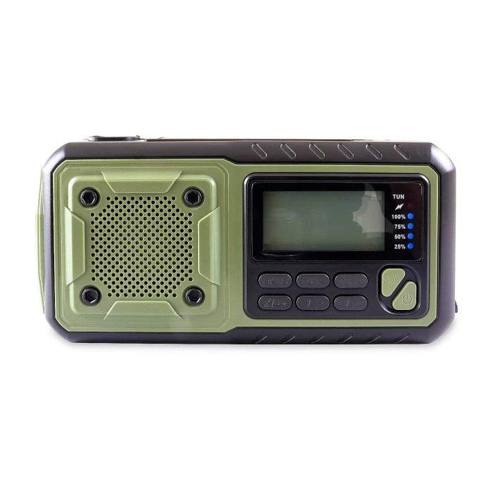 Dieses Multitalent ist Radio, Solar-Panel, Powerbank, Taschen- und Leselampe sowie Notfall-Alarmsignal in einem. Das kompakte und robuste Kurbelradio ist immer und überall funktionsbereit. Es empfängt AM, FM und SW für alle Nachrichten der Welt. Das Radio besitzt einen integrierten und wieder aufladbarem Lithium-Akku, der über USB-Typ-C, dem integrierten Kurbelgenerator oder im Notfall auch über die integrierte Solarzelle bei Sonnenschein aufgeladen werden kann. Darüber hinaus kann das Notfallradio auch mit handelsüblichen AAA-Batterien betrieben werden. Ausgestattet ist es mit Powerbank (4000mAh), Taschen- und Leselampe, Tastensperre, Kopfhöreranschluss, SOS-Alarmtaste, Akku-Standanzeige und Aufhängeschlaufe. Die leuchtstarke Taschenlampe kann in drei unterschiedlichen Leuchtmodis verwendet werden. Die SOS-Alarmtaste löst einen lauten Alarm aus, um im Notfall auf sich aufmerksam zu machen. Ideal für Camping, Outdoor und Survival-Aktivitäten geeignet.