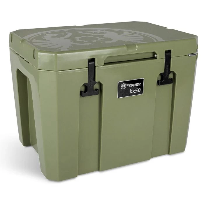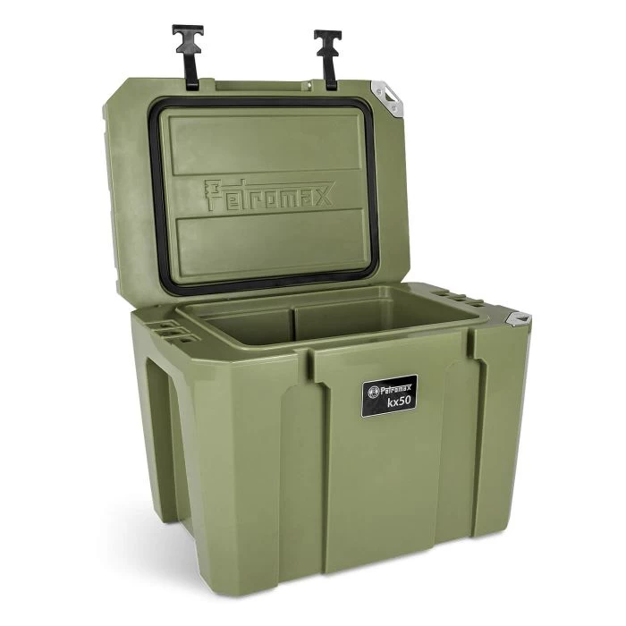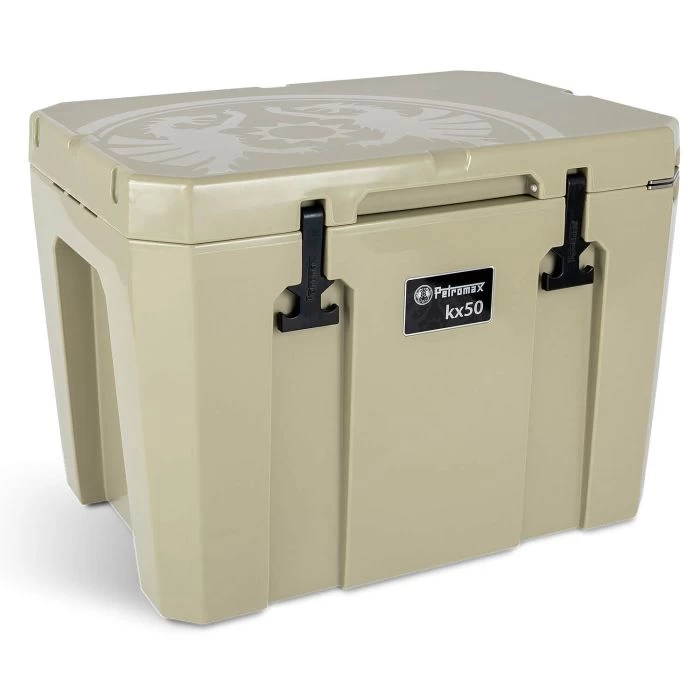 Mit der Petromax Kühlbox KX50 bist du ohne Strom sowohl bei deinem mehrtägigen Abenteuer als auch im Notfall zu Hause bestens vorbereitet und ausgerüstet. Das Ultra-Passivkühlsystem wird allein mit handelsüblichem Eis, Kühlakkus oder Trockeneis betrieben. Die Isolierschicht der Kühlbox ist mindestens 45 mm stark, was für eine möglichst lange Temperaturbeständigkeit im Inneren sorgt. So kann die hohlraumisolierte KX50 Eis bis zu 12 Tage gekühlt halten, ganz ohne Kompressor oder Absorber!