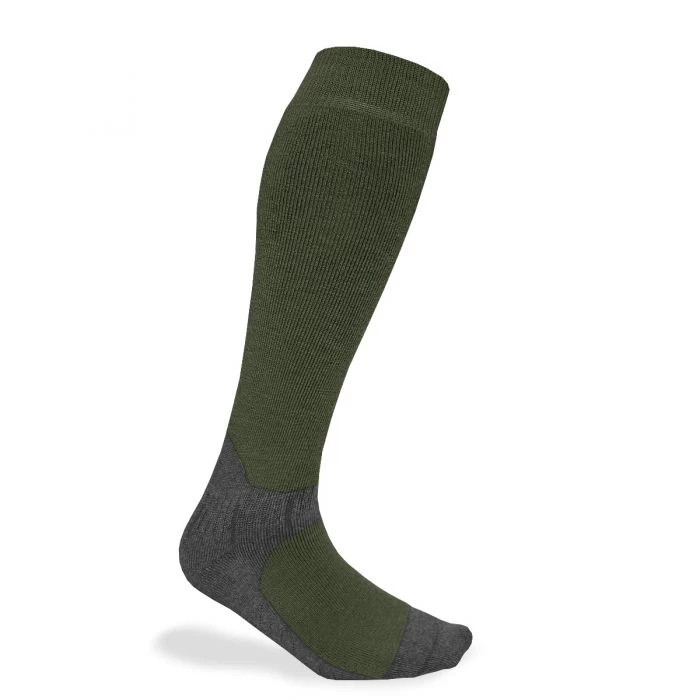 Ideal für Trekking oder den Einsatz, ist dieser Kniestrumpf aus Vollplüsch. Dank den beiden Zonen bietet dieser Strumpf viele Funktionen: Zone anthrazit: Die Vollplüsch Sohle aus gekämmter Baumwolle mit verstärkter Ferse und Spitze, dämpft und sorgt gleichzeitig für maximalen Tragekomfort. Speziell eingearbeitete Lüftungskanäle absorbieren Feuchtigkeit ideal. Vor der Ferse ist eine Dehnungszone aus Lycra eingearbeitet und garantiert stets komfortablen Halt. Zone oliv: Merino Schurwolle sorgt für ein rundum angenehm wärmendes Klima. Ideal Funktionsstrumpf für kalte Tage und absolut wintertauglich, egal ob auf Wandertouren, in Arbeitsschuhen, bei der Jagd, zum Fischen oder Einsatzstiefeln.